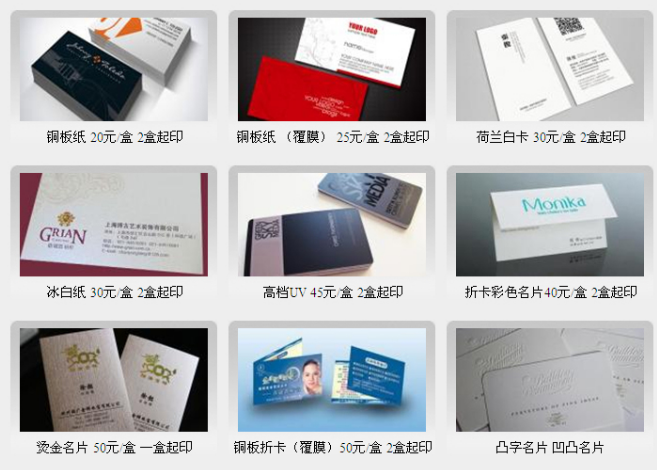260克冰白名片/280克浪漫麗芙名片印刷報價